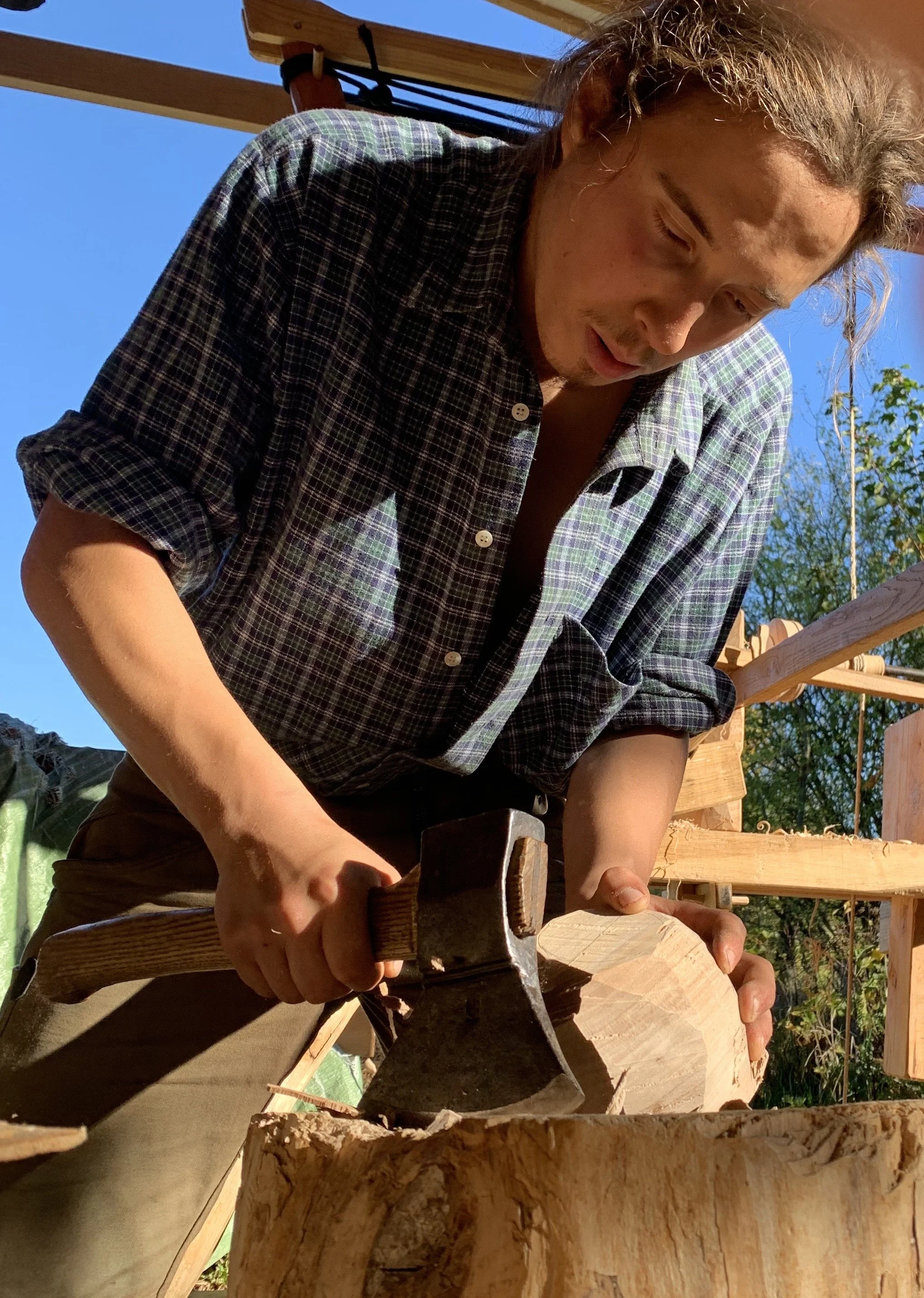 Pirmin has studied different traditional woodworking techniques during the last years using only hand tools, mainly by learning from the work of other woodworkers on the internet, from books and by passing a volunteer year in monument preservation on the Campus Galli, a medieval open air museum and building site. He also likes to share knowledge with other traditional woodworkers. His teaching shows his great interest for the form, function and efficiency tuning of woodworking hand tools such as axes and crosscut saws.